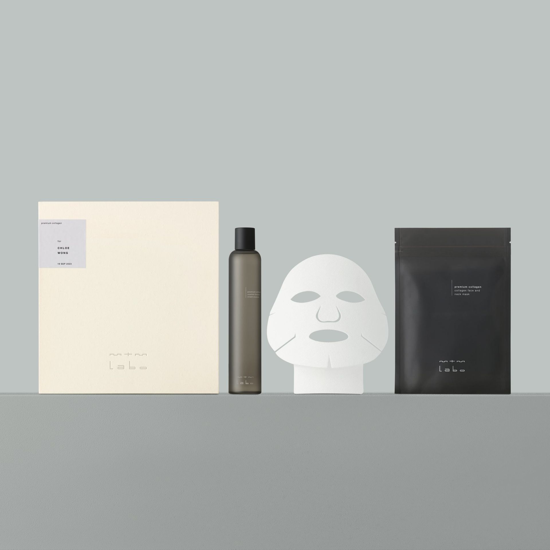 The custom-blended collagen mask, the newest addition to the mtm labo premium collagen collection, is a high-purity collagen face and neck mask supplemented with custom-blended onsen essence and proprietary custom-blend botanical extract. It nurses your skin from the face to the neck, resulting in a high-efficiency [ custom-blended skincare ] for collagen restoration. The portable mask awakens the skin’s “original” energy with luxury substances.